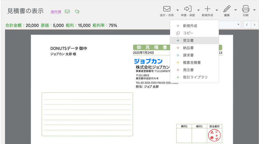株式会社DONUTS(東京都渋谷区、代表取締役:西村啓成)が提供するクラウド型の見積書・請求書作成システム『ジョブカン見積/請求書』は、「受注書作成機能」を新たに実装しました。これにより、売上・請求業務に加え見積書に関連する受注書や案件と紐づけた管理が可能になり、包括的な業務管理を実現します。