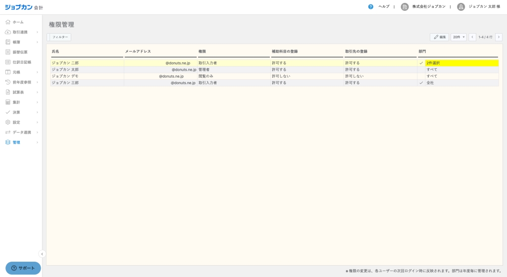 株式会社DONUTS(東京都渋谷区、代表取締役:西村啓成)が提供するクラウド型会計ソフト『ジョブカン会計』は、部門ごとの仕訳入力・閲覧範囲を柔軟に設定することを可能とする「部門権限機能」を新たに実装しました。本機能により、部門ごとに仕訳の入力および参照範囲を細かく設定できるようになり、企業の内部統制強化と経理業務の効率化を同時に実現します。