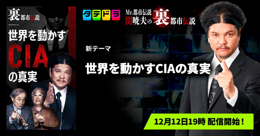 『Mr.都市伝説 関暁夫の裏都市伝説』、新作「世界を動かすCIAの真実」全15話を12月12日(金)より「タテドラ」で配信開始 国際ジャーナリスト2名をゲストに迎え、CIAの知られざる工作活動や誰もが知る大事件の真相に迫る