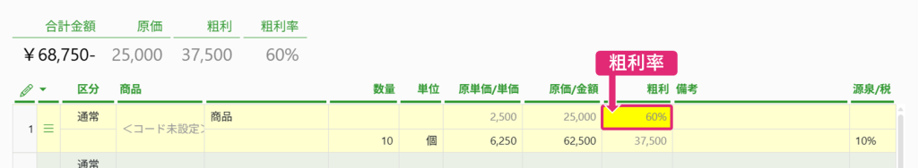 粗利率を編集するだけで、販売単価を自動算出できます。