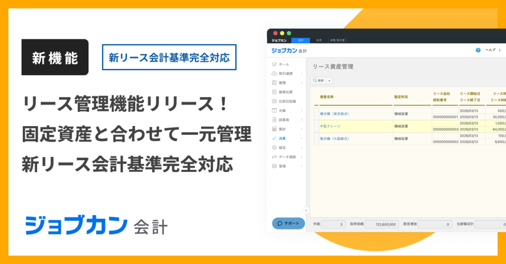 『ジョブカン会計』、新リース会計基準に対応した「リース管理機能」を提供開始 2027年4月以降の適用へ向け、煩雑なリース資産管理・会計処理の自動化で企業の制度対応を支援