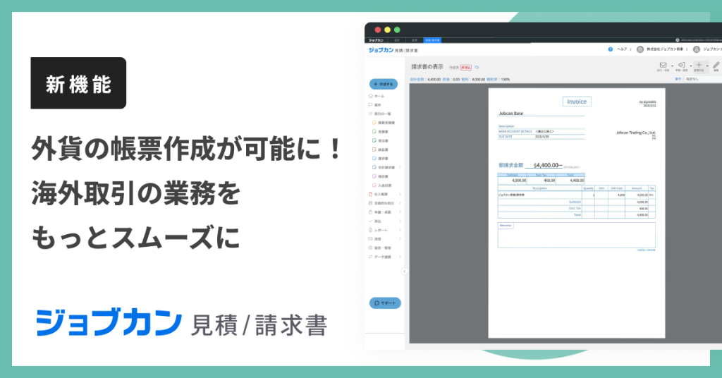 『ジョブカン見積/請求書』、スムーズな海外取引を支援する「外貨帳票作成機能」を提供開始 外貨での帳票作成・自動集計を可能にし、販売管理業務の効率化と
