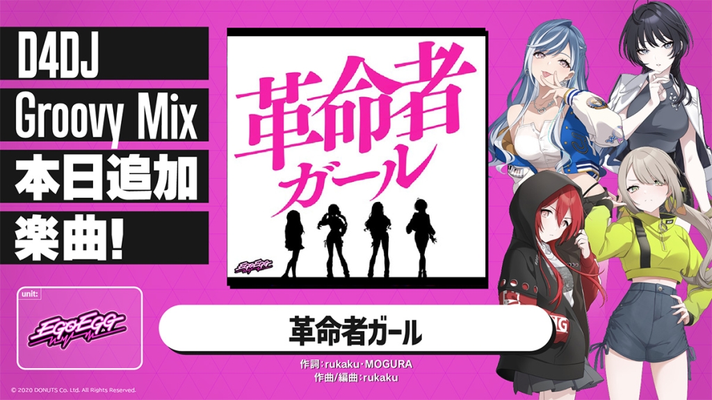 株式会社DONUTS(東京都渋谷区、代表取締役:西村啓成)は、スマートフォン向けリズムゲーム「D4DJ Groovy Mix」(以下グルミク)にて、ユニット「EGOEGG」メンバーのプレイアブル化、およびプレイアブル化を記念したゲーム内イベント「EGOEGG Re:born vol.3」の開催をお知らせいたします。